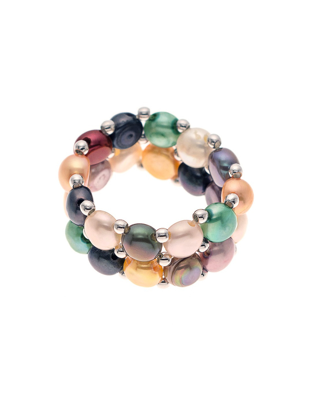 Bague 2 Rangs Perles de Culture 4 mm - 4 Coloris - LENA